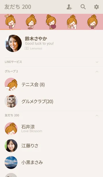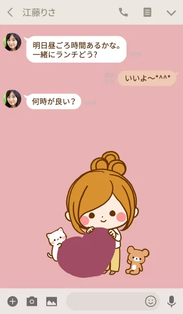 ほのぼのカノジョ 大人のシンプル ピンクのLINE着せ替え