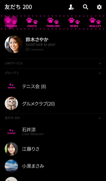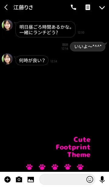 黒とピンクのシンプルでかわいい足跡(肉球)の着せ替え。猫ちゃんわんちゃん好きの人へ。にこいち、ペア画にも。