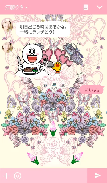 フラワー and バタフライ 1のLINE着せ替え