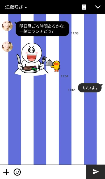 白と黒と青い縦縞の着せかえです。