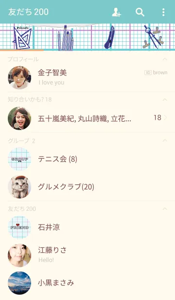 方眼紙と文房具をモチーフにした着せかえです。方眼紙好きにおすすめ。