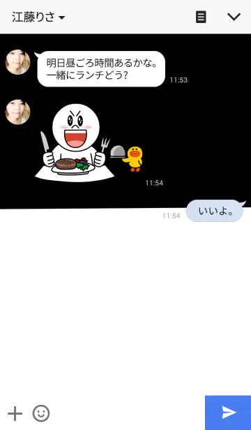 ブラックホワイトバイカラーのLINE着せ替え