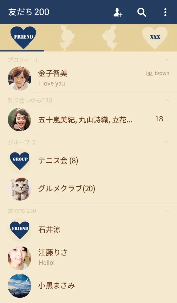 LOVE Pair Navy+Beige.のLINE着せ替え