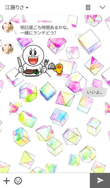 ピンク、黄色、水色、紫、黄緑、カラフルにキラキラ光る。クリスタルサイコロのシンプルで綺麗な白の着せかえです。