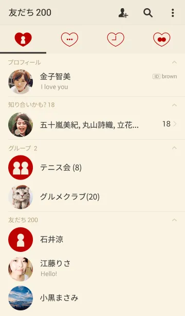 シンプル ハート(ベージュ レッド)のLINE着せ替え