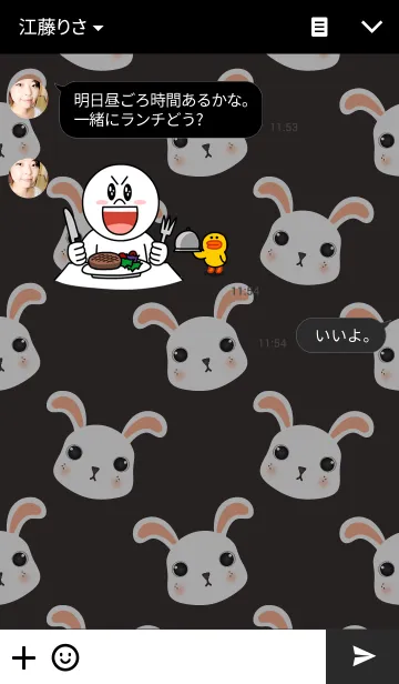Rabbit and black backgroundのLINE着せ替え