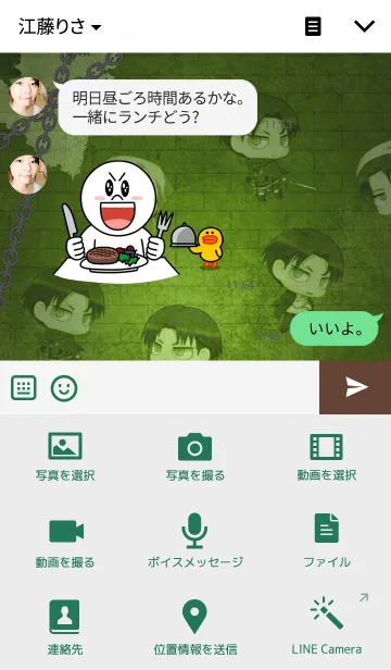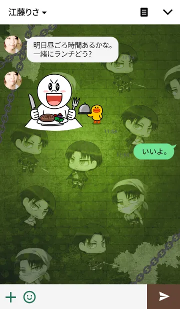 「進撃の巨人」の着せ替えがかわいいちみキャラで登場! エレン・アルミン・ミカサ・リヴァイでLINEを楽しもう!