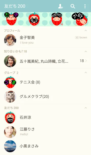ハングル(苺&うちわ)のLINE着せ替え