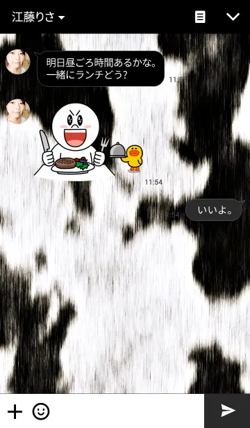 牛柄のシックな着せ替えを作りました。トーク画面の既読も視認しやすいように調整してます。