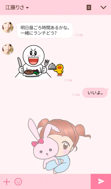 ツインテールのかわいい女の子と、毎日を元気に過ごそう。 うさぎのぬいぐるみはお友達。 スタンプとあわせて楽しめます。