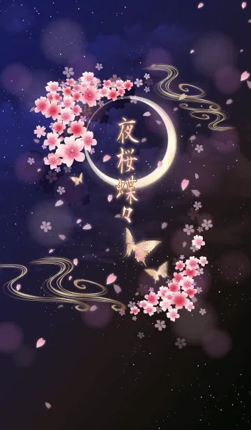 月夜に舞う蝶々と桜吹雪が美しい和柄。トークルームに花弁が美しく舞います。