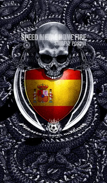 国旗と龍と海賊ドクロの着せかえで、サッカー強豪国の国旗バージョン第4弾、スペイン編です。サッカーが好きな人にお勧めのスピードメタルボーンファイヤーの第53弾です。