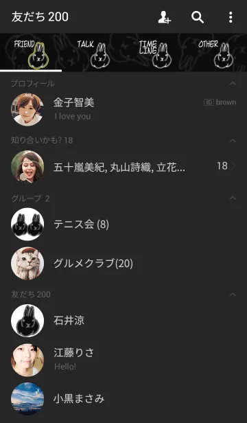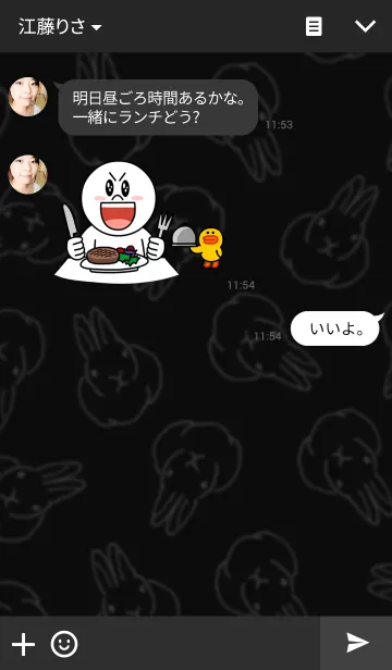 線画の兔イラストがシンプル可愛い着せかえです。男女問わず使いやすい黒系ベースのデザインです。