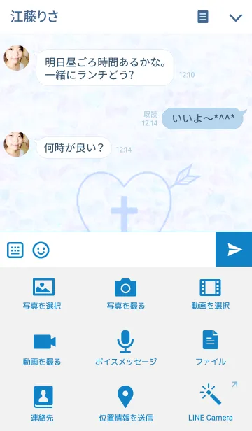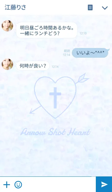 弓矢の刺さったハートのアイコンと、爽やかなブルー系デザインのシンプルな着せかえ。 by IENITY