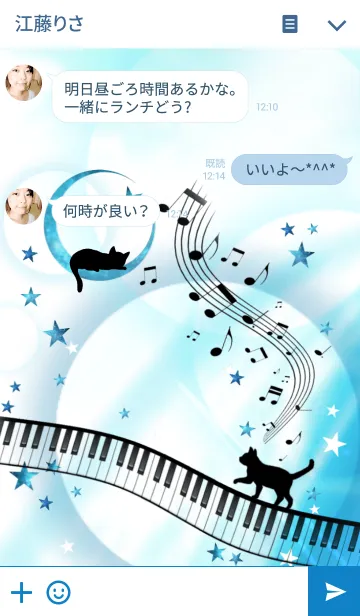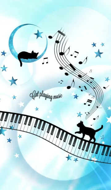 音楽を奏でる猫の着せ替えです♪ピアノバージョンは第二弾。今回は月の上で音楽を楽しんでいる猫も♪