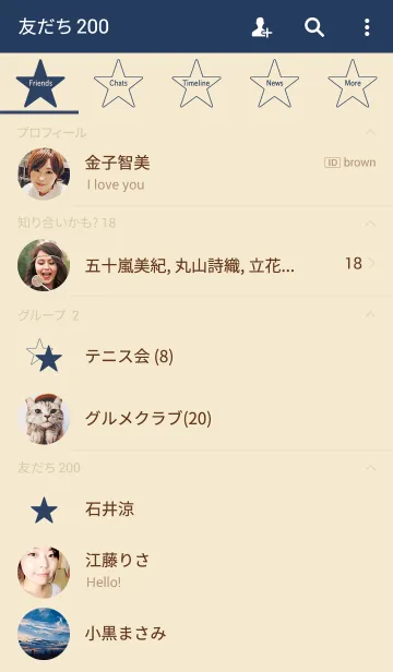 シンプルスター ネイビーオンベージュのLINE着せ替え