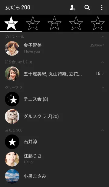 シンプルスター ホワイトオンブラックのLINE着せ替え