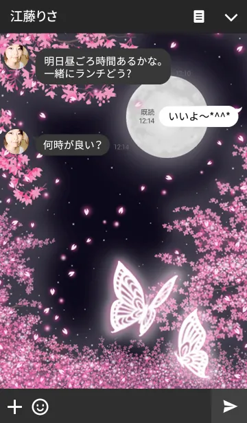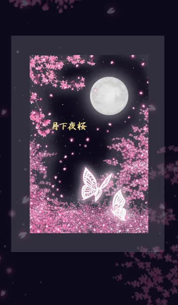 月の下で、夜桜に美しい蝶が舞う着せ替えです。