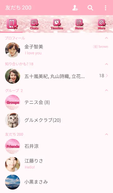 キラキラかわいいピンクアイコンの着せ替えのLINE着せ替え