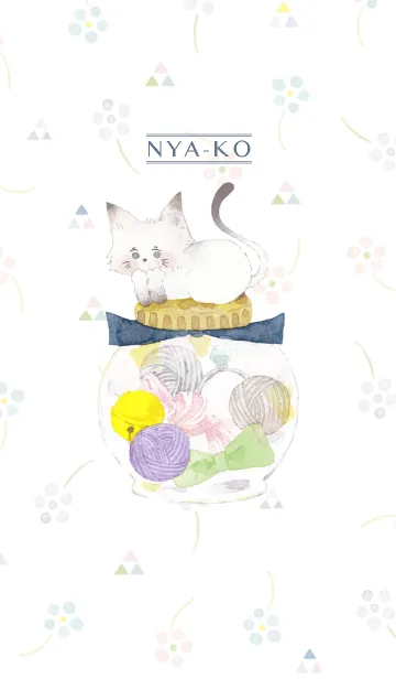 猫の「にゃーこ」の着せ替えです。 鈴やリボン、毛糸玉に猫缶・・・ にゃーこの宝物も一緒にちりばめました*