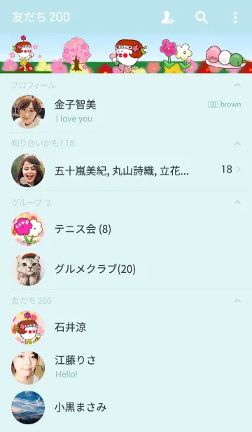 お花畑で花見をするじゃい子。のLINE着せ替え