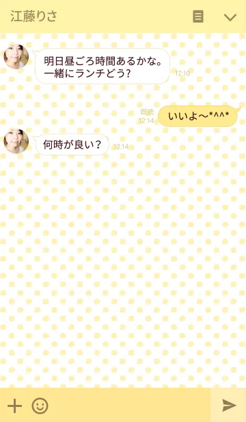 レモンの着せ替え。トーク画面は見やすいシンプルなドット柄!れもんとテーマカラーの黄色がさわやかでかわいい着せ替え☆