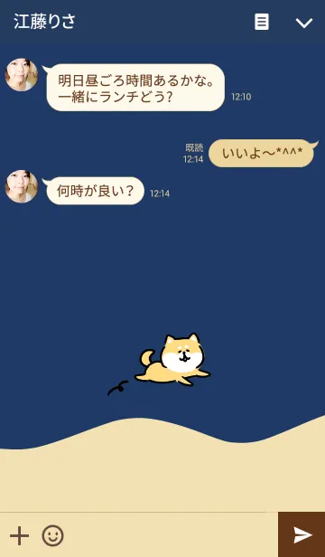 ゆるい柴犬の着せかえです。ネイビー・ベージュ・クリーム色の落ち着いた配色です。
