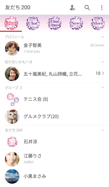シンプルなダイヤモンド×ピンク&紫のLINE着せ替え