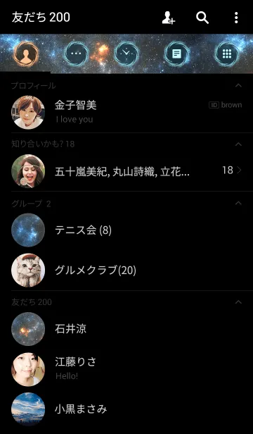 シンプルな宇宙の着せかえです。暗闇に輝くたくさんの星と星雲が神秘的な雰囲気。男性にもおすすめなクールでかっこいい着せかえです。天体や夜空が好きな方にも♪
