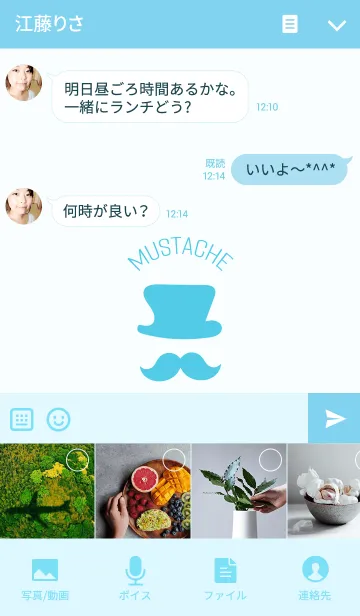 青色のおヒゲのきせかえのLINE着せ替え