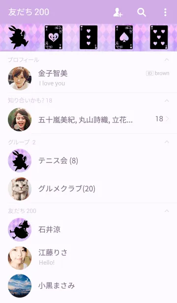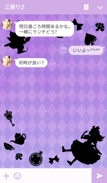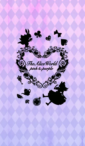 不思議の国のアリスのシルエットとピンク&パープルの背景がおしゃれで可愛い着せかえです。