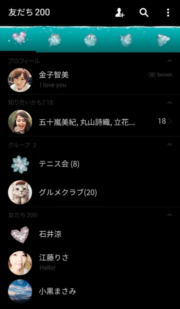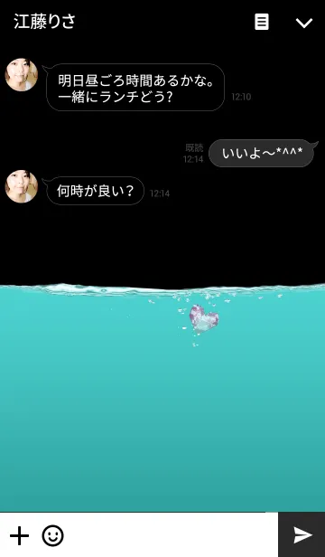 ブラック×ターコイズブルーの透き通る水の中にクリスタルのハート。優しくクールな雰囲気の着せかえです。