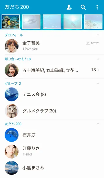 高品質な海の風景写真で、イルカ、カメ、熱帯魚、サメ、クラゲが登場♪まるでマリンダイビング中☆アイコンにもサカナがたくさん。春、夏、秋、冬、季節問わず使ってね。