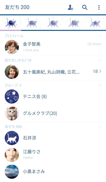星空で描かれた可愛い猫の着せかえです。幻想的で美しいデザインで、とても見やすくトーク画面を邪魔しません。