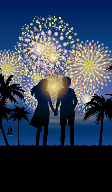 花火、夏の海夜のLINE着せ替え