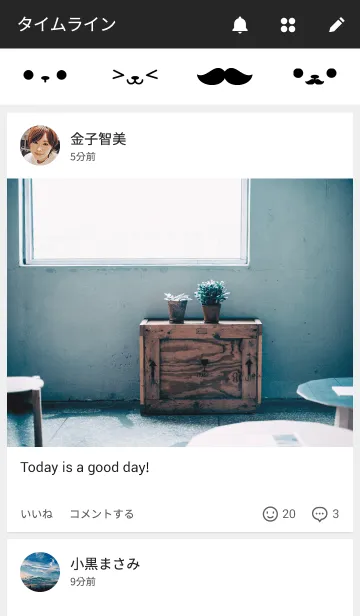 シンプル しろ theme. かわいい 猫アラームです くちひげ