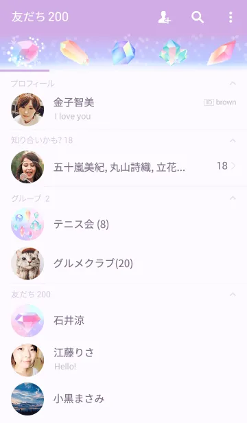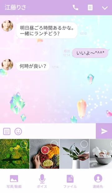 キラキラ輝く鉱石の着せ替え。ピンクや紫、水色のゆめかわカラーと宝石みたいな鉱石でトークをかわいく楽しんで!