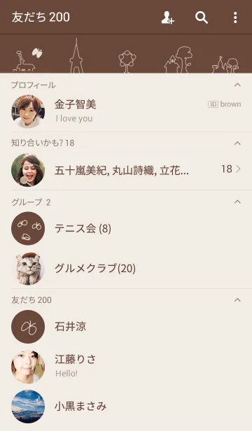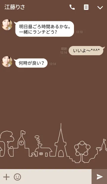 ひと筆書き風に描いた街並みのシンプルな着せかえです。カフェ風ベージュ&ブラウンカラーが新登場
