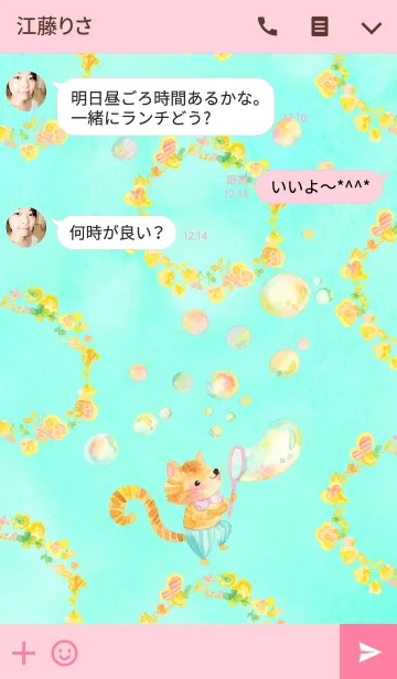 ネコとしゃぼん玉のLINE着せ替え
