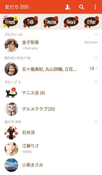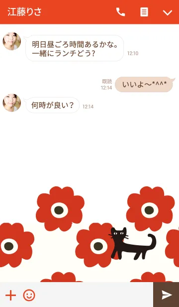 北欧×黒ねこ(赤フラワー)のLINE着せ替え