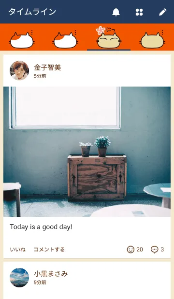 「こてつときなこ」の着せかえ登場。最近人気の猫のキャラクターを使ってシンプルで面白いデザインにまとめました。 猫のかわいい動きを表現しています。