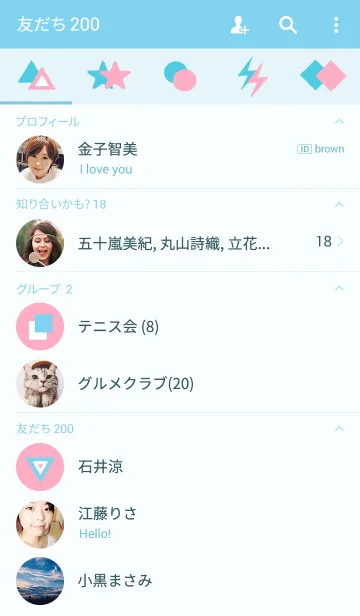チョコソーダ作。80年代90年代(80's 90's)のビンテージ風。三角形のパターン柄と星と稲妻。ポップでカラフル。パステルカラーのピンクと水色と白でかわいい。シンプル。