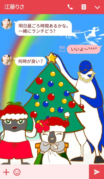南の島のペンギンがフラを踊ったりサーフィンしたり。南の島の陽気なクリスマスが画面を彩ります。クリスマスタイプ