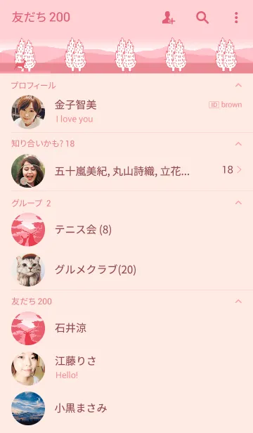 パインフォレストの生活:スムージーピンクのLINE着せ替え