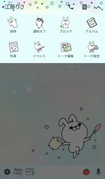 うさぎ100%の着せかえが登場!POPで可愛いデザインです♪※ご利用のLINEのバージョンにより一部画面デザインが異なる場合がございます。※アップデートサポート期間:販売終了後180日間