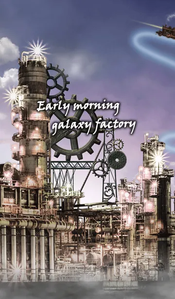 銀河にある工場地帯。朝焼けに照らされてより非現実的な世界になる。