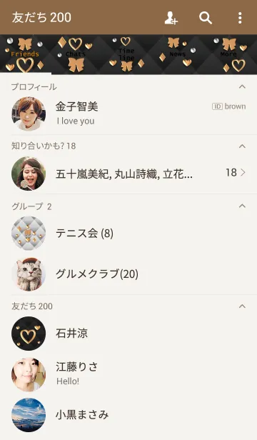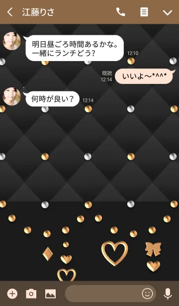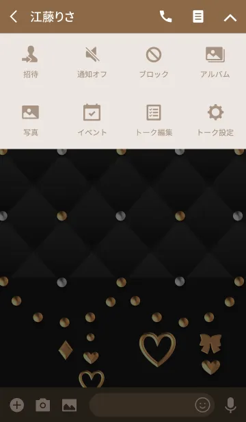 黒のキルティング(金のハートとリボン)のLINE着せ替え