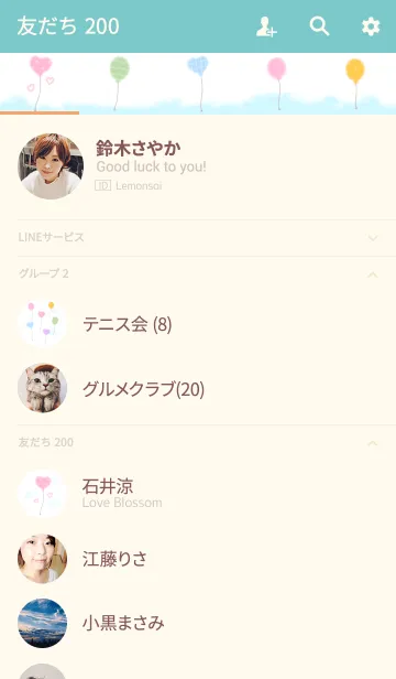 ガーリーな手書き水彩風船のLINE着せ替え