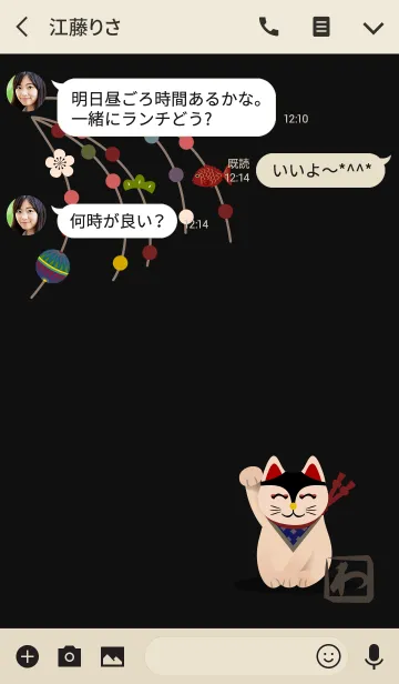 和柄04 (招き猫) + 墨色のLINE着せ替え