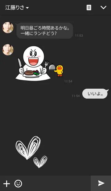 手書きの二つのハートの着せ替えです。 黒色を基調とした落ち着いたイメージです。